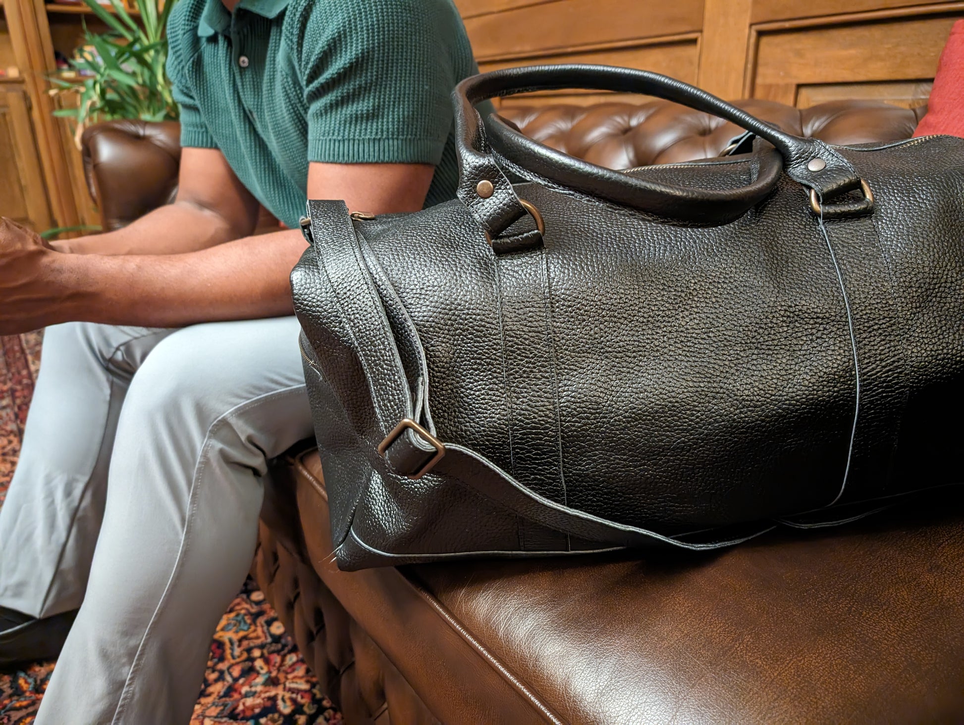 Our versatile and stylish Awassa Medium-sized weekender bag, designed to accompany you on all your adventures. Available in classic colors of black, caramel, chocolate, and cognac, this bag is the perfect blend of elegance and functionality. This premium weekender bag is crafted with durable materials and features spacious compartments to hold all your essentials for a getaway in style. Elevate your travel experience with the Awassa Medium weekender bag, a must-have accessory for the modern traveler. (Also available in Large.)