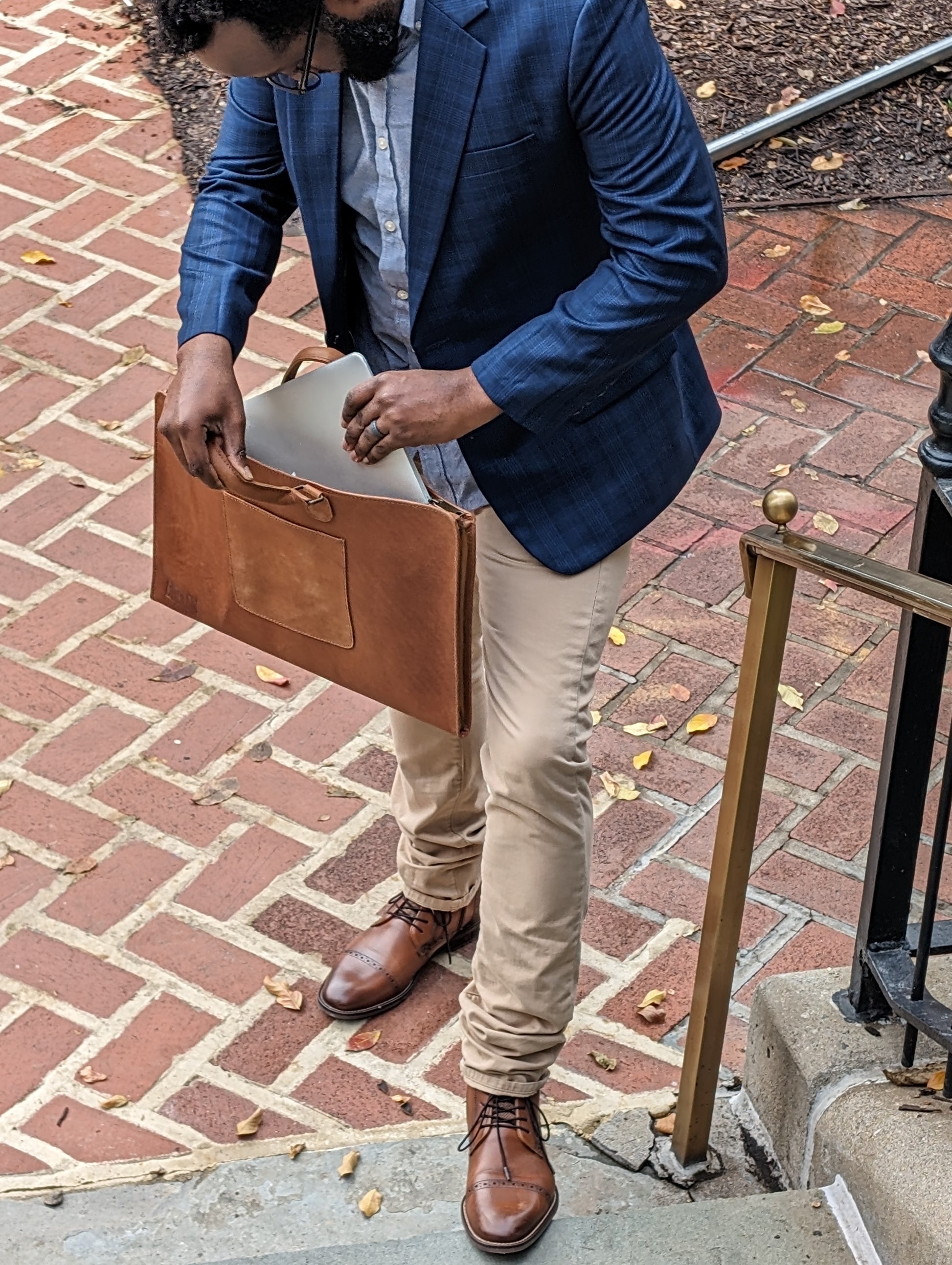 Handcrafted in Ethiopia, this premium, full-grain leather folio by Chiban embodies our commitment to providing opportunities to change-seekers by empowering them with training and opportunities to develop into local artisans. We ensure each folio is meticulously created, providing valuable opportunities for the talented individuals behind its making. This sophisticated design incorporates dedicated compartments for your laptop and notebook, convenient pen holders, a secure interior zippered pocket, and an accessible exterior pocket—all within a refined, streamlined profile.